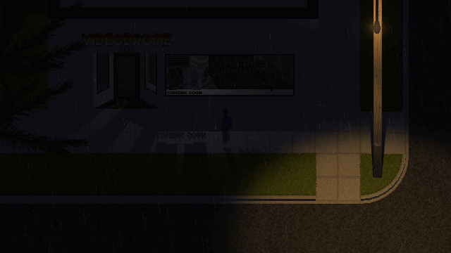 The assets themselves have also had to go through an upgrade to find their way in this new dimension. I originally tried to piece together buildings out of separate sprites, but the sprites’ lack of depth lead to Olestra-levels of leakage, with lights failing to be blocked by sprite walls: